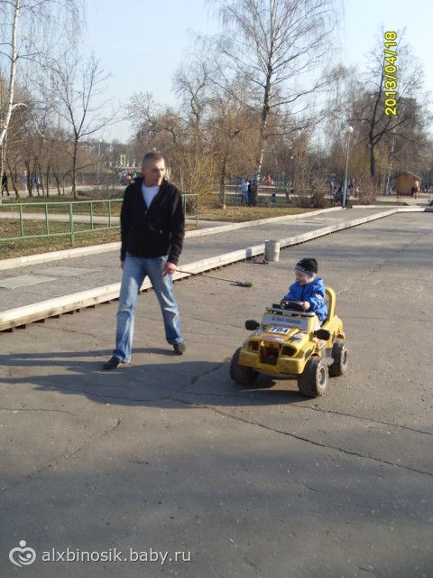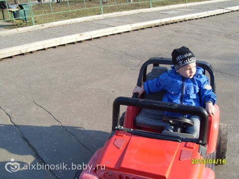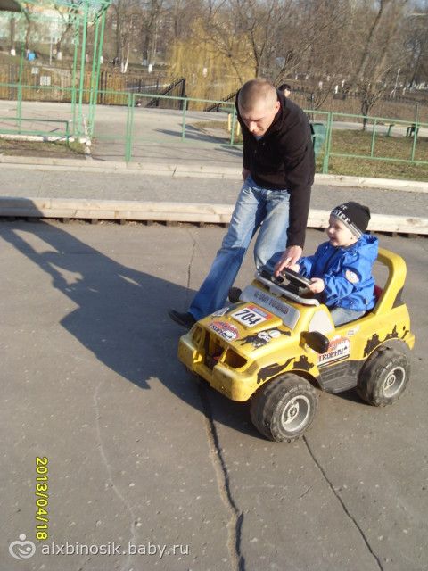 они там такие древние, жуть. рулить невозможно, папа помогал. а вот педальку хорошо нажимал.