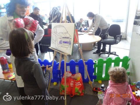 Так здорово было там! Пока родители оформляли машину на диагностику, мы с Ксю развлекались! Клоуны развлекали детишек, играли в кубики, рисовали, буковки крепили, клоун сделал для Ксю собачку из шарика