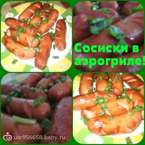 Вот вспомнила про свой аэрогриль!!! И решила сделать там сосиски!!! такая вкуснятина получилась, а еще сверху зеленым лучком- как будто на природе побывали, на пикнике!!!!!