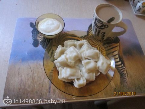 Вареники с картошкой и йогуртом.Кофе с молоком