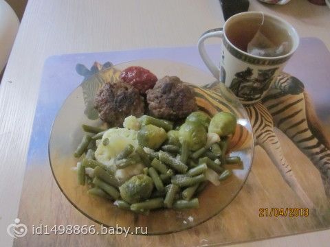 Котлеты жареные в мультиварке и тушиные овощи там же.Фруктовыйчай.