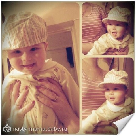 Какой зайка!))) Волосатенький такой!) А мы лысые родились, и вот спустя 6 месяцев на голове всего пара волосин)))