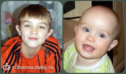 есть вот такая фотка, где они в одной и той же одежке, в одном возрасте(7 мес), но в общем они только носопырками похожи)))