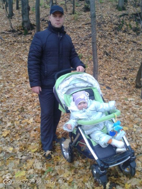Ну а теперь ближе к делу. Выбирала я очень тщательно. главным критерием были большие, надувные колеса, амортизация, большой кап, лежачее положение спинки. Так же есть дождевик классный, противомоскитка пристегивается к капу на молнии + отделка у нее ажурная, кружевная немного(тоже приятно). Материал коляски достаточно качественный, сшита тоже не придерешься)) Остальные штучки-приятное дополнение(муфта, насос, подстаканник).