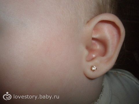 Вот и не пойму, то ли мне кажется, что чуть поразному проколоты ушки из-за того, что левое у нас чуть лопоухое (ведь если смотреть по нижней выемке на мочке ушка, то посередине нее сережки обе), то ли правда на правом ушке сережка чуть дальше..