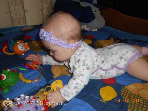 Вот и закончился первый наш день.Да он был нелёгким.Особенно вечером.Самый главный наш человечек в семье-это доча. Растёт не по дням, а по часам.Кажется недавно она появилась на свет 16. 11. 12 г в 6ч 35мин. Весила тогда всего 3кг и была 49см.И вот спустя 5месяцев 8дней она весит 6800г и 61см.На сегодняшний день вся наша семья болеет. Доча уже неделю. Кашль и насморк так и не проходят, хорошо ещё температуры не было.Так ещё и 2 дня назад я заметила, что у неё лезит 2-й зубик внизу.Первый у нас появился, когда доча ещё была у меня в животе.Так что мы родились уже с зубиком.Вот такая у нас необычная девчушка родилась.Затем в 3мес 3нед она поползла и вот сегодня она первый раз села.Не успела запечатлить этот момент.Под рукой фотика не было.А день проходил так. Утром отправив папу на работу, я вызвала детям врача.Катюша стала ещё сильнее кашлить, а сын сегодня только заболел.И до обеда мы ждали педиатра.После её ухода я поняла, что гулять лучше не ходить.На улице похолодало +7 и дождь.Весь день просидели дома.Илья как всегда смотрел мультики.А дочка весь день капризничала.И вечером дала жару.Спать хочет, а я никак не могла её уложить.Кричала и кричала.Вроде уложила, а она 20мин поспала и опять давай орать.Мне кажется весь подъезд слышал, как она надрывала глотку.Не знала как успокоить.Ничего не радовало её.Пока не пришёл папа.Только он её взял на руки и всё.Она успокоилась.А я уже такая обессиленная была.За 2ч она так меня вымотала, что я за день так не устаю.В итоге день у нас сбился весь.И вместо того чтобы уложить её в 9ч, уложила только в 22ч30мин.