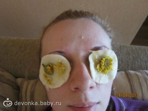 Для глаз сделала примочки из любимых ромашки и липы.