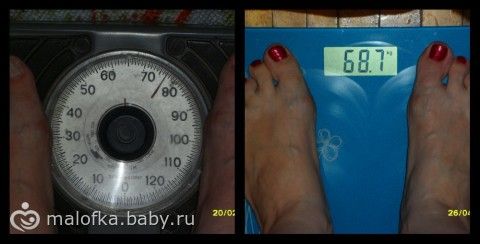 Фото весов с первой недели марафона нет, поэтому выкладываю фото с заявки на участие в марафон, которая была 20 февраля, и на сегодня.