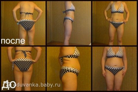 С мужем пошли в магаз и я померила шорты 42р-ра. Хотя после беременности ношу 44 (низ). С верхом у меня все в порядке было и есть. А вот талия стала стройнее, бока и уши с лях ушли и вообще ноги стали худее!!5. Положа руку на сердце, довольны ли Вашей проделанной 2х месячной работой?