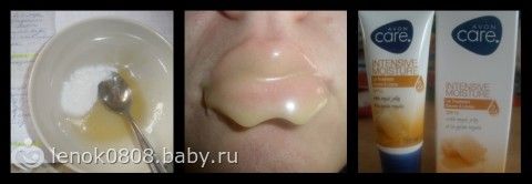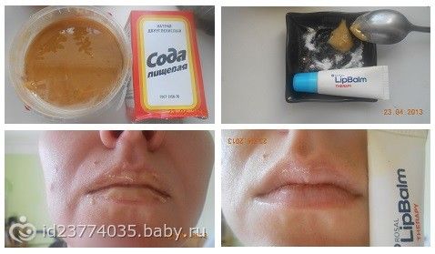 Пилинг по рецепту Ариши из соды и меда, увлажнение бальзамом для губ с пчелиным маточным молочком SPF15.
