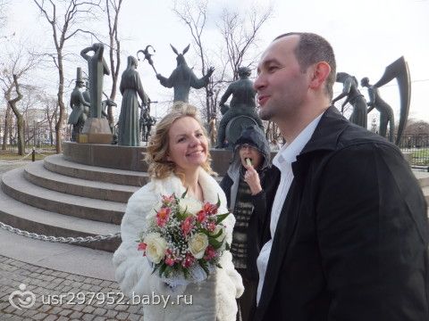 Расписались, сели в лимузин, посетили Болотную площадь, скульптурную композицию «13 пороков» и Нескучный сад. Повесили замочек на Лужковом мосту.