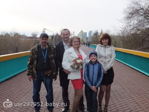Участники мероприятия следующие — я (невеста), жених, Вита, моя маман, брат мужа, хозяйка нашей квартиры (она подарила ананас), мой племянник-крестник Демид и чудесная пара — Мишка (похожий на Емельяненко) и Света.