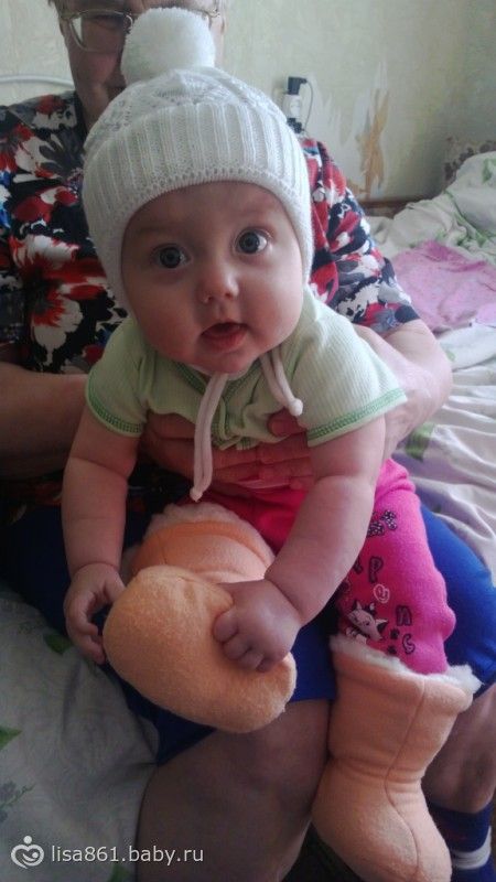 Учится сидеть, очень любит разгребать кучу из игрушек и находить все что ей нужно, говорит слоги та та та, ба ба ба, итись, итись!!!
