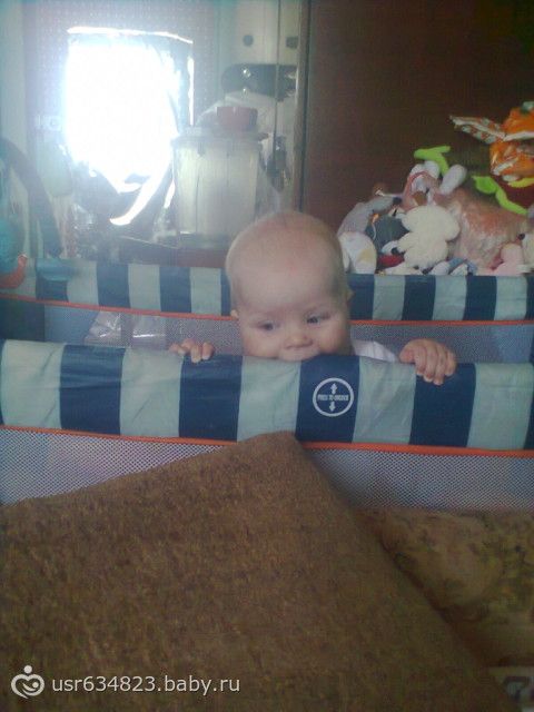 Лежал мой лысый парень в своем манеже-кровати, игрался, делами занимался. Я решила в шкафу бумаги и мелкие всякие мелочи перебрать. Отвернулась — стою вытаскиваю из ящичка всё. Слышу кряхтит усиленно. Поворачиваюсь и… СТОИТ!!! Раньше он, если поставить стоял сам, да и становился, если было за что держаться, а в манеже поручни высоковато. Таки дотянулся! Таки подтянулся! Упертый какой!))) Спортсмен прямо!!!))) Я аж чуть слезу не пустила от неожиданности)) Расцемала всего и вот с вами делюсь)))