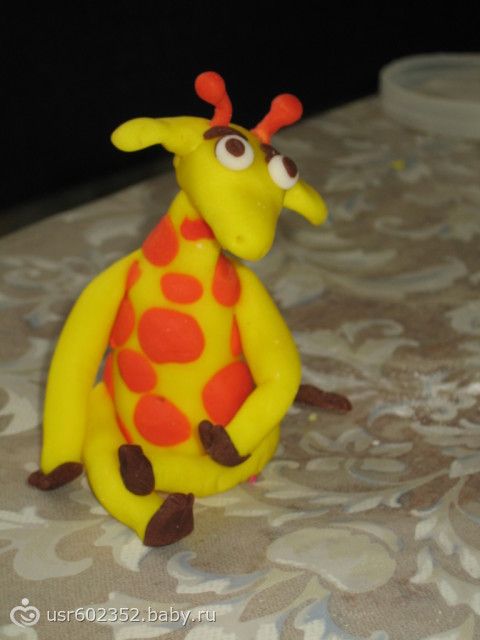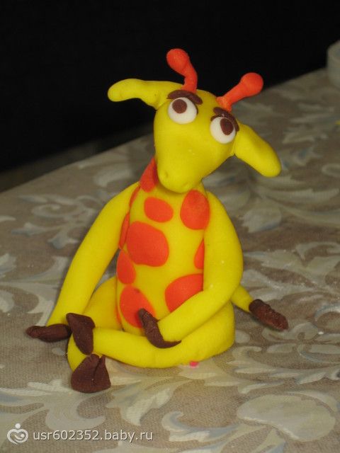 Лепила я ЖИРАФА, по книжке с пошаговым фото(там именно такая шея), муж обозвал его КОРОВОЙ)))