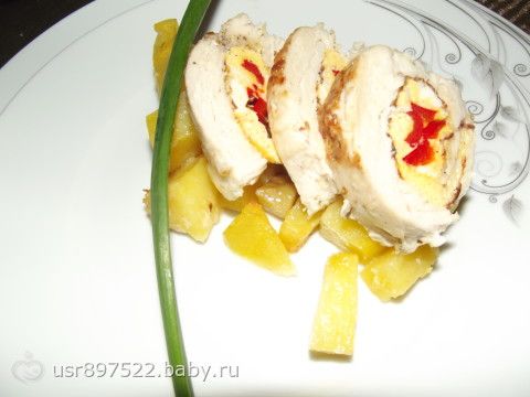 Девочки, сделала куриный рулет с картофелем на гарнир. Нам очень захотелось Может и вам рецептик пригодится:)
