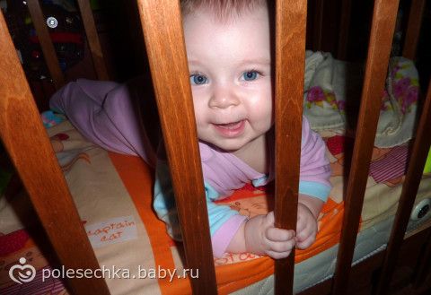 пытаемся стоять только не в кроватке)а около мамы или в ванночке