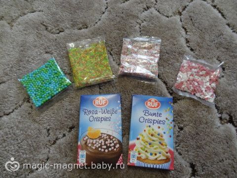 Но все таки больше ей понравились посыпки. Они действительно выглядят как конфетки:-))) Еле отняла:-)))