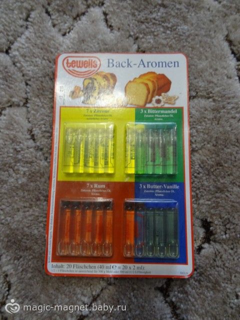 знакомая из Германии тоже привозила ароматизаторы такие, в выпечке очень вкусно, просто добавляешь в тесто