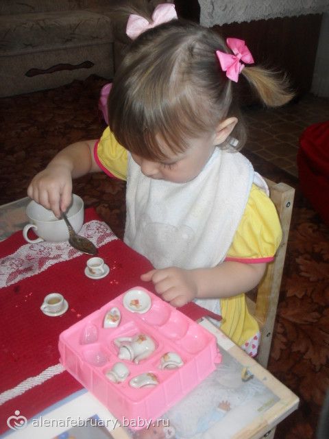 Далее по плану- полноценный завтрак- девочка большая уже, кашу сама накладывает, и чай наливает):