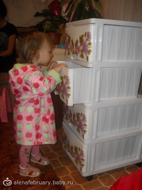 вот еще он))- здесь дочь ищет мои подарки в моем подарке- я решилась купить вот такой комодик — в надежде, что хоть немного игрушек спрячется- наивная