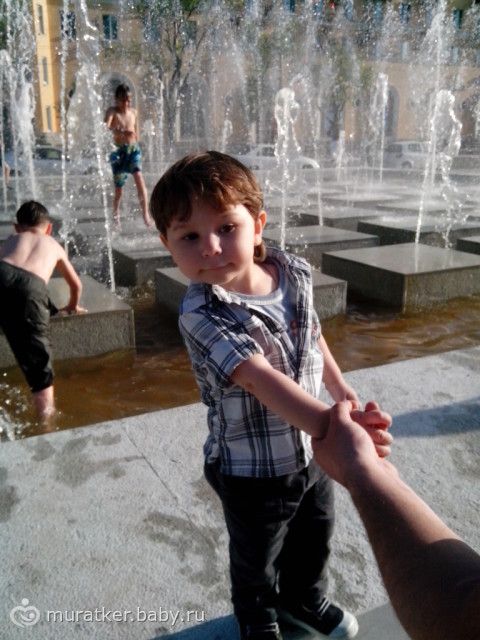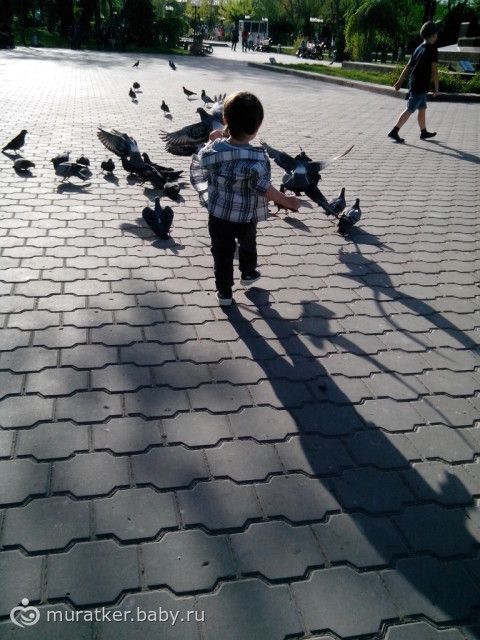 Погодка была обалденная,+30, грех дома сидеть, папа наш на работе, поэтому с мелким вдвоем прыгнули в маршрутку и поехали в город.Кормили голубей, бегали, играли.