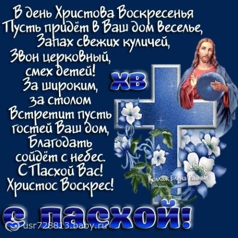 Счатливой Пасхи!!!!!!!!!!!! 5 мая 2013 11:19 Комментарии Пожалуйста, будьте вежливы и доброжелательны к другим мамам и соблюдайте правила сообщества ПожаловатьсяСкопировать ссылку Афина доченька14 летсыночек12 лет Москва и вас с праздником! ПожаловатьсяСкопировать ссылку Анна Москва Предыдущая статьякак вам?Следующая статьязавтра нам 33 недельки))))))))Актуальные постырадионяня philips avent scd 485 отзывыоблазит кожа на голове младенец