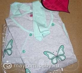 я взяла обычные резиновые сланцы)) мои любимые) и халат с ночнушкой купила в магазине для беременных, халат на запахе, ночнушка обычная)