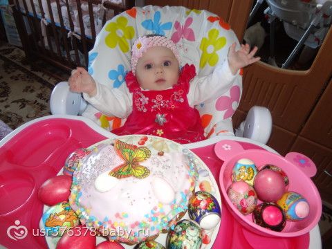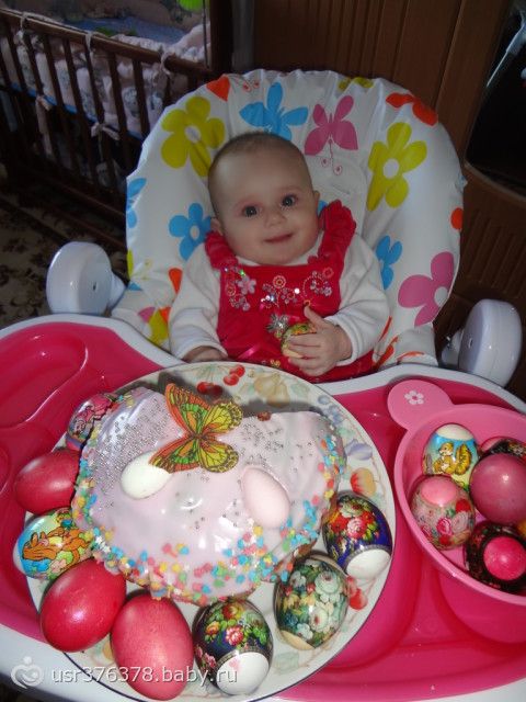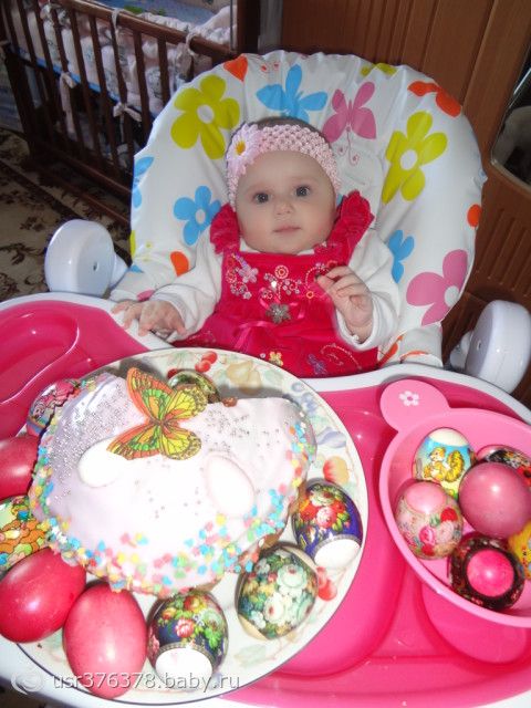 Все у нас впервые: первая зима, первая весна, первые праздники… Вот и Пасха наступила! С праздником вас, девочки! Христос Воскрес!!! И еще, мы первый раз одели «взрослое» платьице!!!