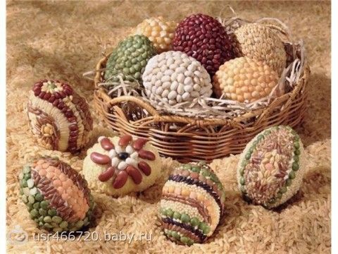 та ну:) это нужно за неделю до Пасхи начинать яйца обклеивать зернами.
