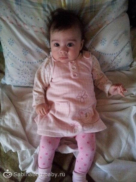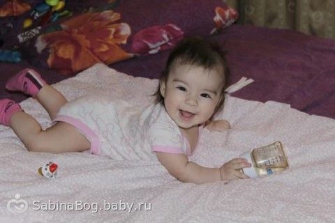 Вот уже и 5 месяцев моей крошке, она такая уже большая, такая сообразительная, такая хорошенькая)) Мы совсем уже большие, ползаем, болтаем, хохочем,, держим бутылочки сами, вытаскиваем и засовываем сами соску, во всю тресет всем что попадется ей под руку, уже во всю хочет сесть и стоять) Ножки крепкие, стоит очень уверенно) Зубик наш еще не вылез, хотя десенка уже раскрылась, капризничает если что то отнять)) Мы уже показываем свой характер, требует если что то хочет) Мы на ИВ с 4х месяцев, прикорм еще не вводили, так… иногда балуемся яблочным пюрешком и сочком))