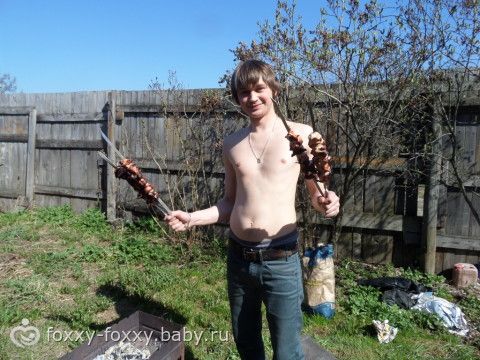 2 мая. Погода стояла замечательная, и мы решили поехать с друзьями на шашлыки) Быстро собрались, доехали до METRO, закупились продуктами и поехали к нам на дачу-огород, всего в 10 минутах езды от дома)) Хорошо отдохнули и наелись до отвала) Это муж с шашлыками)