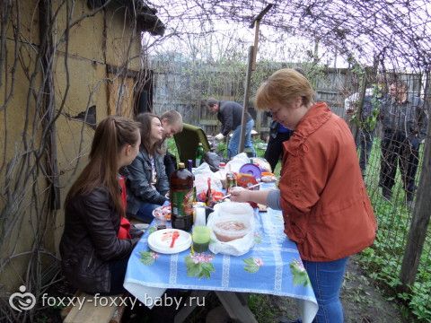 5 мая. Заранее договаривались на этот день поехать на шашлыки всей семьёй, но утром погода не радовала. И вот в 11 утра позвонила моя мама и сказала, что дождь закончился час или два назад, поэтому можно ехать на шашлыки, и пофиг, что там пасмурно)) Договорились выехать в час, потому что мужу надо было немного поспать после рабочей ночи. И никакая погода не испортила нам праздник) Отметили Пасху шашлычками, почти всей семьёй: мы, мама с отчимом, младшая сестра со своим молодым человеком, младший брат со своей девушкой и свёкр, не хватало только любимой свекрови, но она на даче до конца мая. Вот рабочий процесс готовки и накрывания на стол: