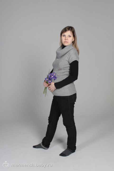 Поэтому я шла в обычный магазин и брала себе блузочки, подчеркивающие грудь и свободные в талии, трикотажные блузы (того же вида), а низ брала в беременных магазинах