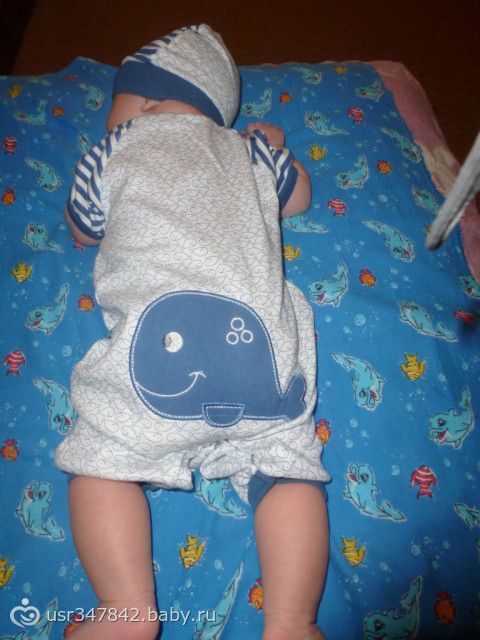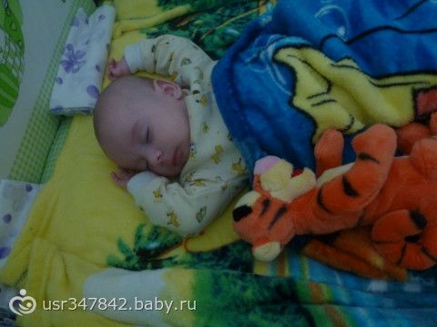 На кроватке он лежит, ножки задирает,