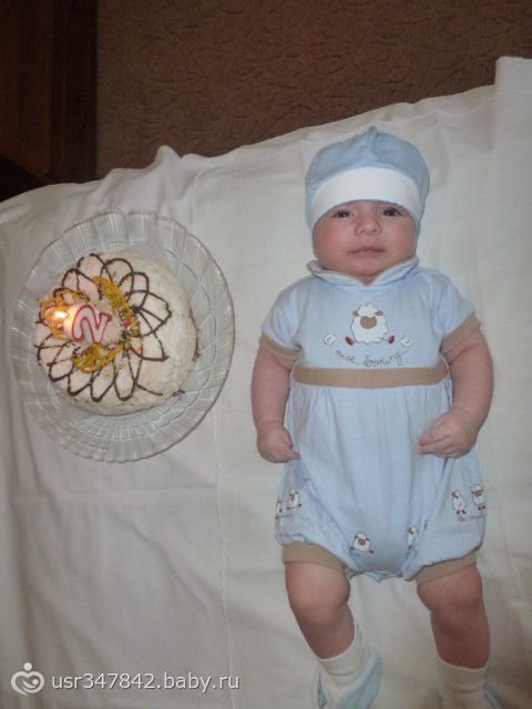 а проснулись в неочень хорошем настроении, еле нарядила и сфотографировала с тортиком.(из-за того что капризничал сам на себя не похож на фото.)