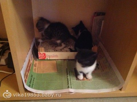 Лоточек у меня получился спонтанно и самопроизвольно)))) Я даже не думала, что они так быстро начнут в него ходить. Пока я собиралась достать с келлера Алискин мелкий лоток, поставила им этот ящик из- под клубники)))