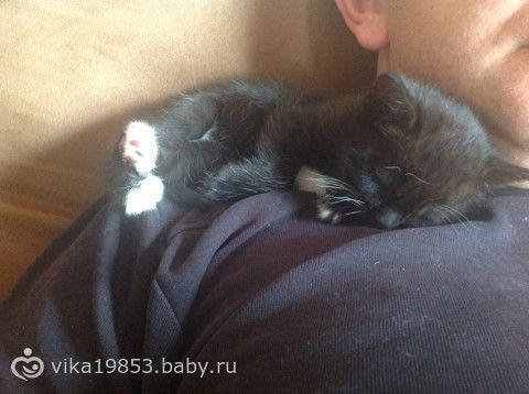 Эта маленькая чернушка очень полюбила моего Витю. Даже, если я ее брала к себе на руки, а рядом был он, это чудо сразу уползало к нему))))) Вот, сладко спим в теплом месте.