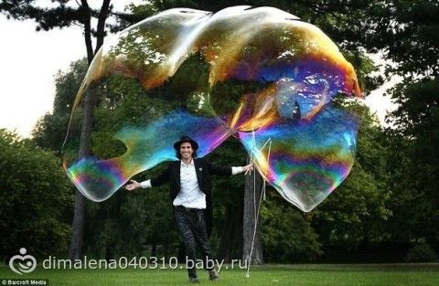Многие уже видели на цирковых представлениях как фокусник надумает огромные мыльные пузыри, они долго не лопаются. Они такие огромные, что в них может поместиться человек! Как же это возможно? Эта забава будет интересна не только детям, взрослые увлекаются ничуть не меньше.