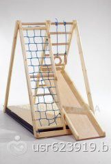 Детский уголок раннего развития производится из натурального дерева – бук; состоит из таких спортивных снарядов как гладиаторская сетка, шведская стенка и идет в следующей комплектации: