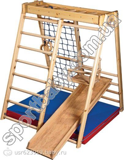 Польза от занятий на спортивном комплексе с медицинской точки зрения также очевидна. Ну, во-первых, Ваш малыш станет подвижным, более крепким, вследствии чего он будет лучше расти и развиваться. Во-вторых, занятия в спортивном уголке помогут избежать проблем с позвоночником.