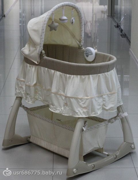 Многие задумываются купить на первое время колыбель или пока ребёнок не вырастет детскую кроватку. По мне как лучше купить колыбель она примерно хватит до 6 мес. в зависимости от роста ребёнка и не будет ли он в ней вставать. И мне кажется что новорождённому ребёнку удобнее и уютнее будет спать в мягкой колыбельке (а не в деревянной кроватке) прикрытым капюшоном (защищает от внешнего мира). Выбирали мы нашу колыбель не по цене, а по красоте-выбор получился удачный колыбель нам обошлась в 3,850 руб. и очень даже красивая, со многими функциями. Функции: укачивание, мелодии, оснащена колёсами, колыбель трансформируется в качалку, игрушки, вместительная тканевая корзина. Наша малышка спит в ней с удовольствием думаю проспим мы в ней месяцев до 4 точно, а потом купим кроватку детскую. Даже когда просыпается я включаю ей мелодии природы, она ещё может пролежать 10 минут любуясь на игрушки и слушая мелодии:-)