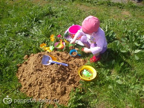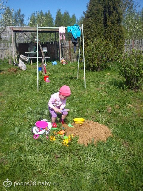 Папа «сделал» песочницу. Вывалил два ведра песка возле домика.