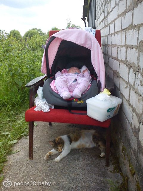 мы с Полей 2 года назад тоже ездили на дачу. Она лежала в кресле-переноске с капюшоном накрытая сеткой от насекомых.