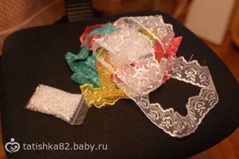 немного кружева. уду пробовать бантики и половики жемчуга)