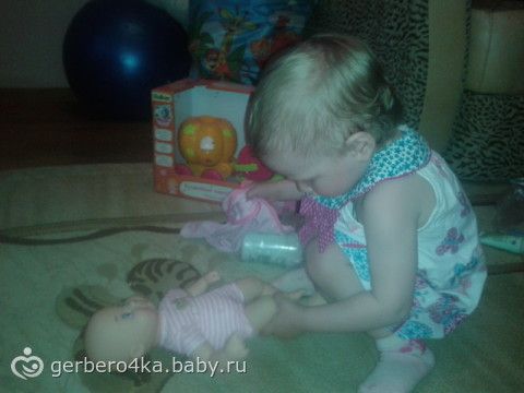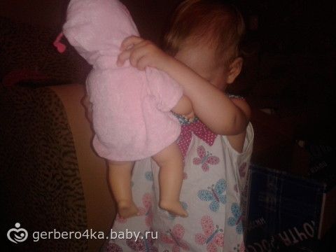 вот такая кукла. Фотки не переворачиваются, так что делаем зарядку для шеиЭто кукла просто прелесть. ее можно купать в воде, несмотря на то что она мягкая и в ней есть батарейки. При соприкосновении с с водой она так здорово гулит