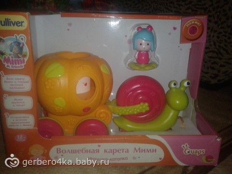 Волшебная карета Мими. К своему стыду не знаю кто такая Мими, но карета классная. Ее надо возить на веревочке, а Мими в это время кружась в танце под музыку, которую издает при езде карета, то поднимается то опускается из нее
