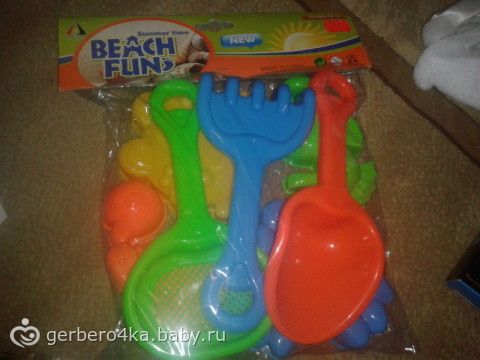 Дальше мы нашли вот такой замечательный набор для песочницы. Очень яркий, красивый и удобные ( лопатку держать в нем проще чем нашу).