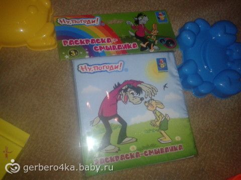 Следующие чудо, это раскраска с героями из мультфильма НУ ПОГОДИ, А раскраска товарищи, не простая, а многоразовая. В ней рисуешь фломастерами, а потом под водичкой можно все смыть, высушить и снова использовать))))) Правда Диана Александровна пока решила рисовать на себе и маме, а не раскраске, ну ничего))))