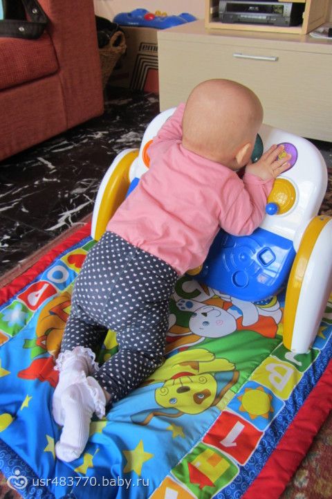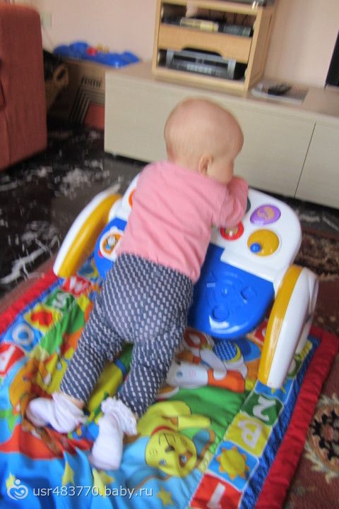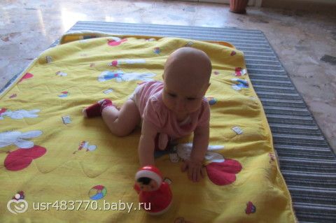 Еще. Вчера мы ездили к нашей бабушке и малявочка держась за игруху усердно пыталась встать, а сегодня ( это наша самая главная новость!) сама встала в кроватке!!! УРА!!!